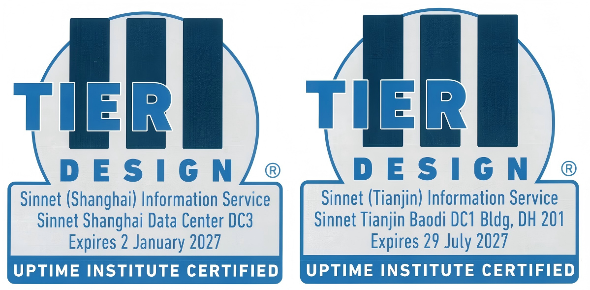 经过Uptime行业专家的严格评审,今年光环新网上海嘉定数据中心和光环新网天津宝坻数据中心分别通过Uptime Tier III设计认证,说明项目基础设施系统架构设计符合国际领先标准及行业先进技术,可为客户提供更加稳定、可靠的服务。